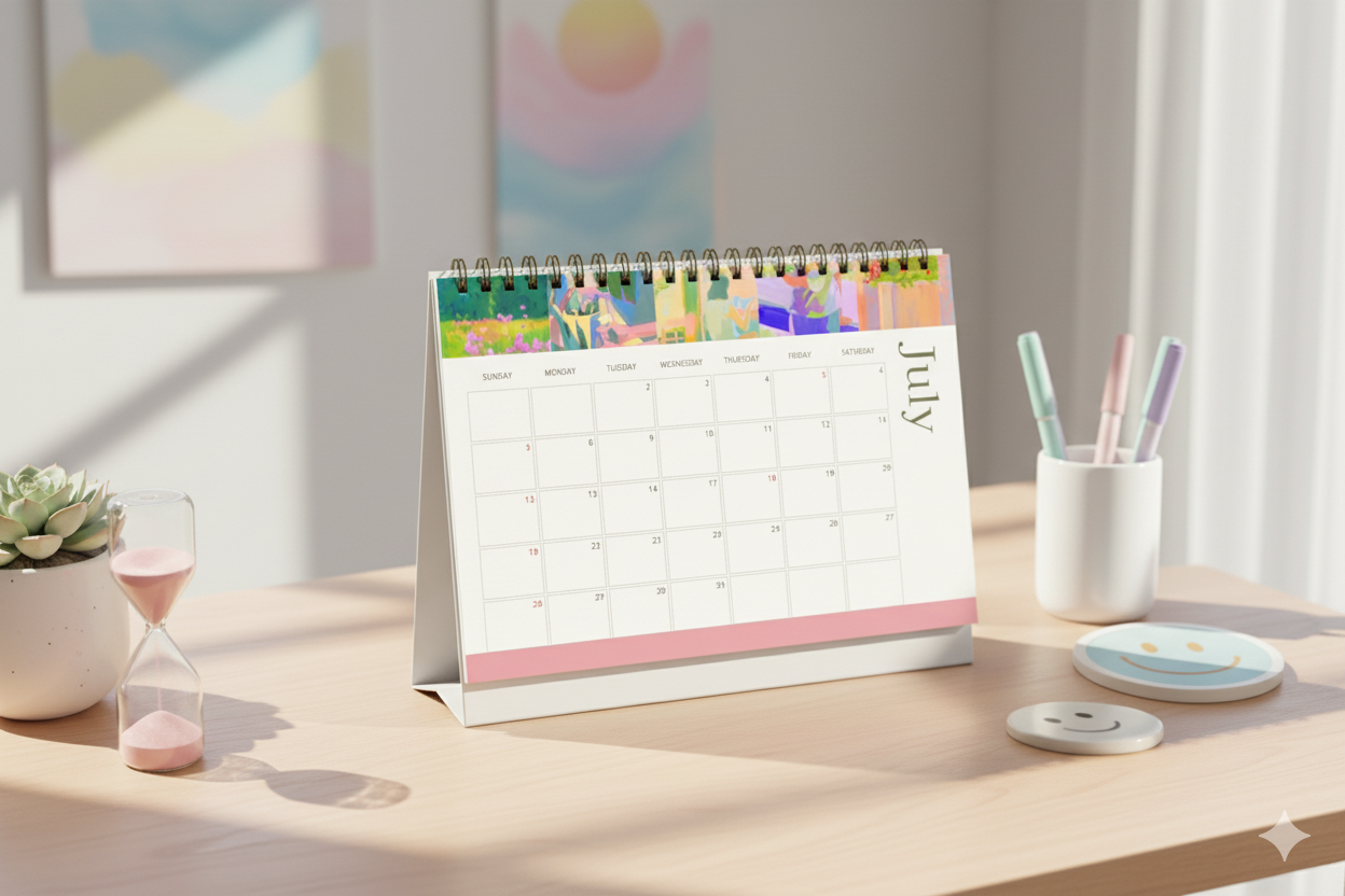 Transform your desk into a little gallery of joy with our Abstract Art 2026 Desktop Calendar, a beautiful blend of color, creativity, and mindful design. Crafted with soothing pastel artwork for each month, this premium desk calendar is perfect for anyone who adores aesthetic stationery and modern art-inspired décor.