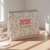 • 🌷 Full 2026 desk calendar with floral theme